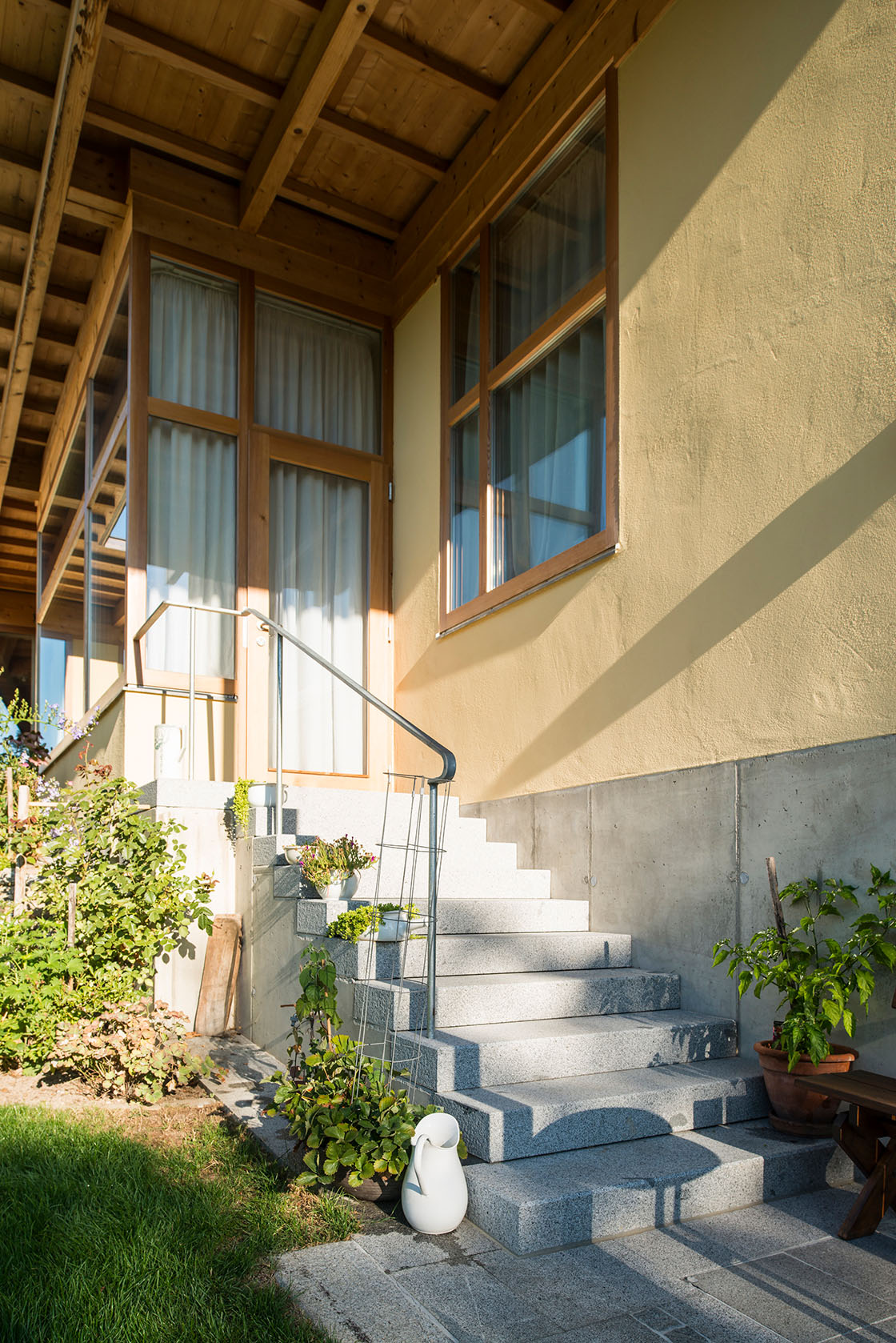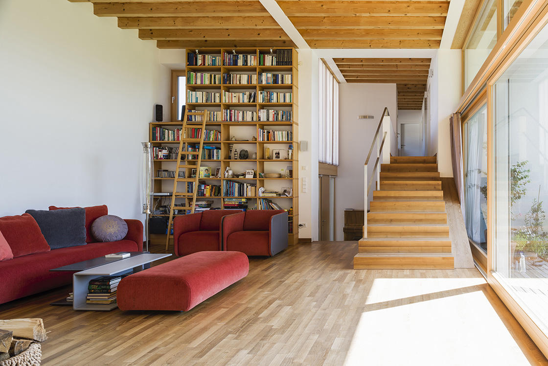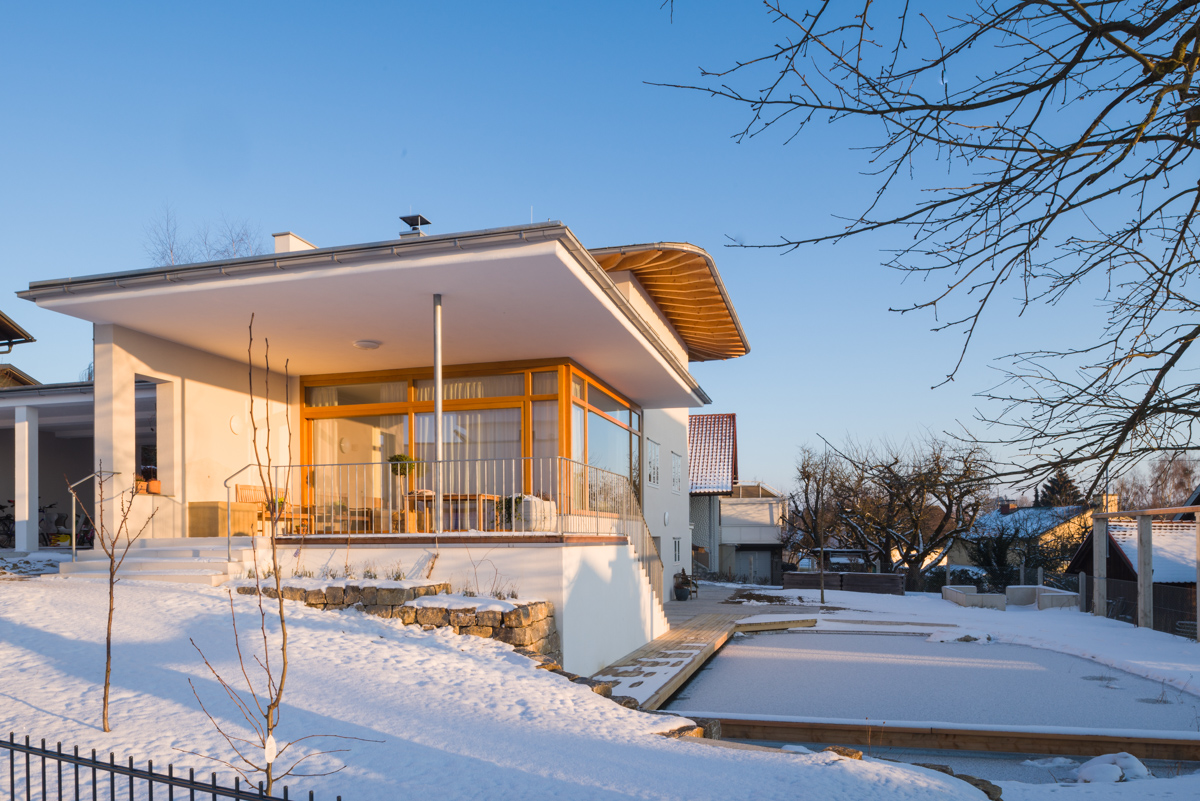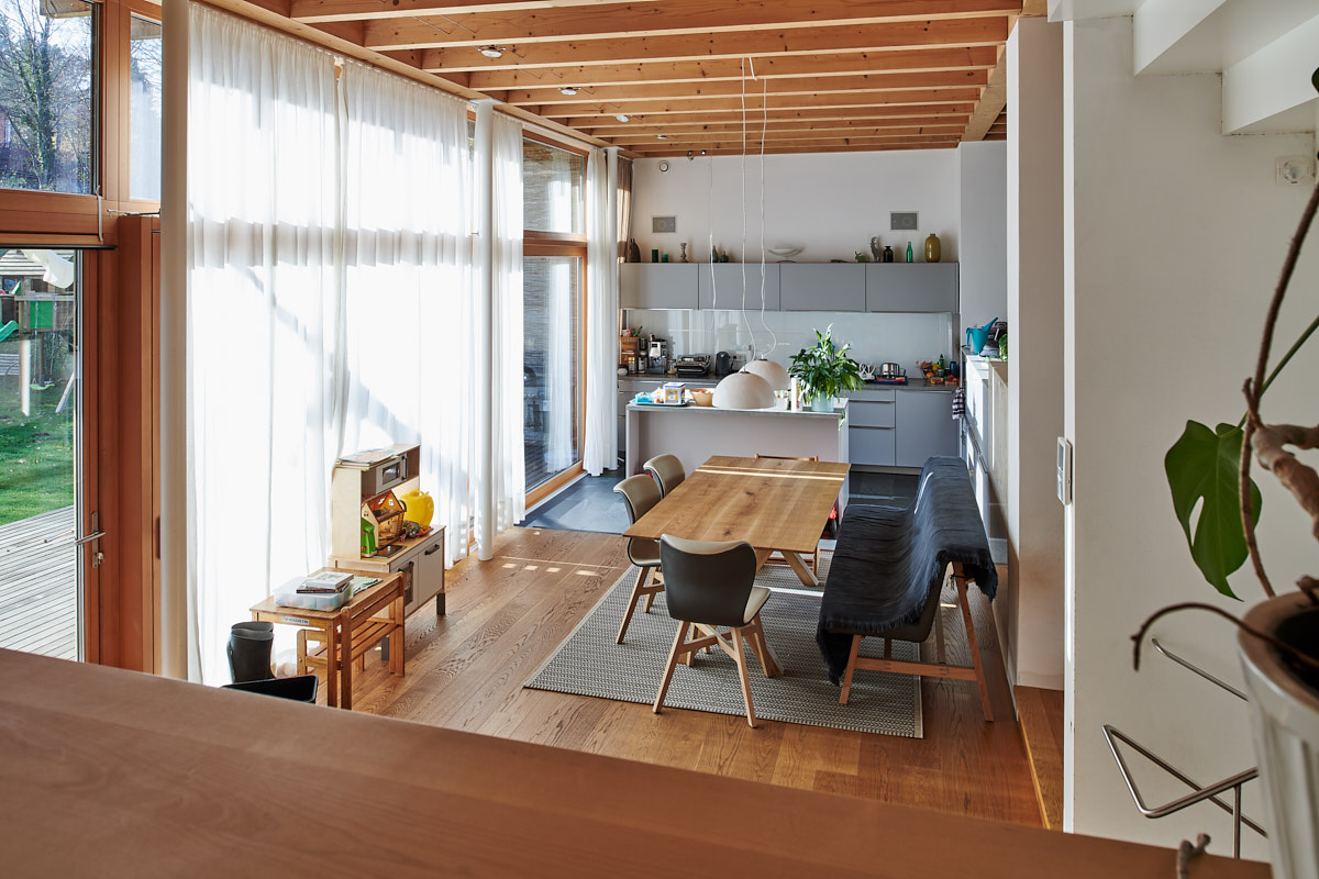 Exterior view of the main façade and entrance © Renate Schrattenecker-Fischer Exterior view of the main façade and entrance © Renate Schrattenecker-Fischer Two-storeyed hall, bedroom on the upper floor © Renate Schrattenecker-Fischer Two-storeyed hall, bedroom on the upper floor © Renate Schrattenecker-Fischer Living room and stairs leading to the bedrooms © Renate Schrattenecker-Fischer Living room and stairs leading to the bedrooms © Renate Schrattenecker-Fischer Eat-in kitchen © Renate Schrattenecker-Fischer Eat-in kitchen © Renate Schrattenecker-Fischer Garden-view, raised living- and dining room © Renate Schrattenecker-Fischer Garden-view, raised living- and dining room © Renate Schrattenecker-Fischer
