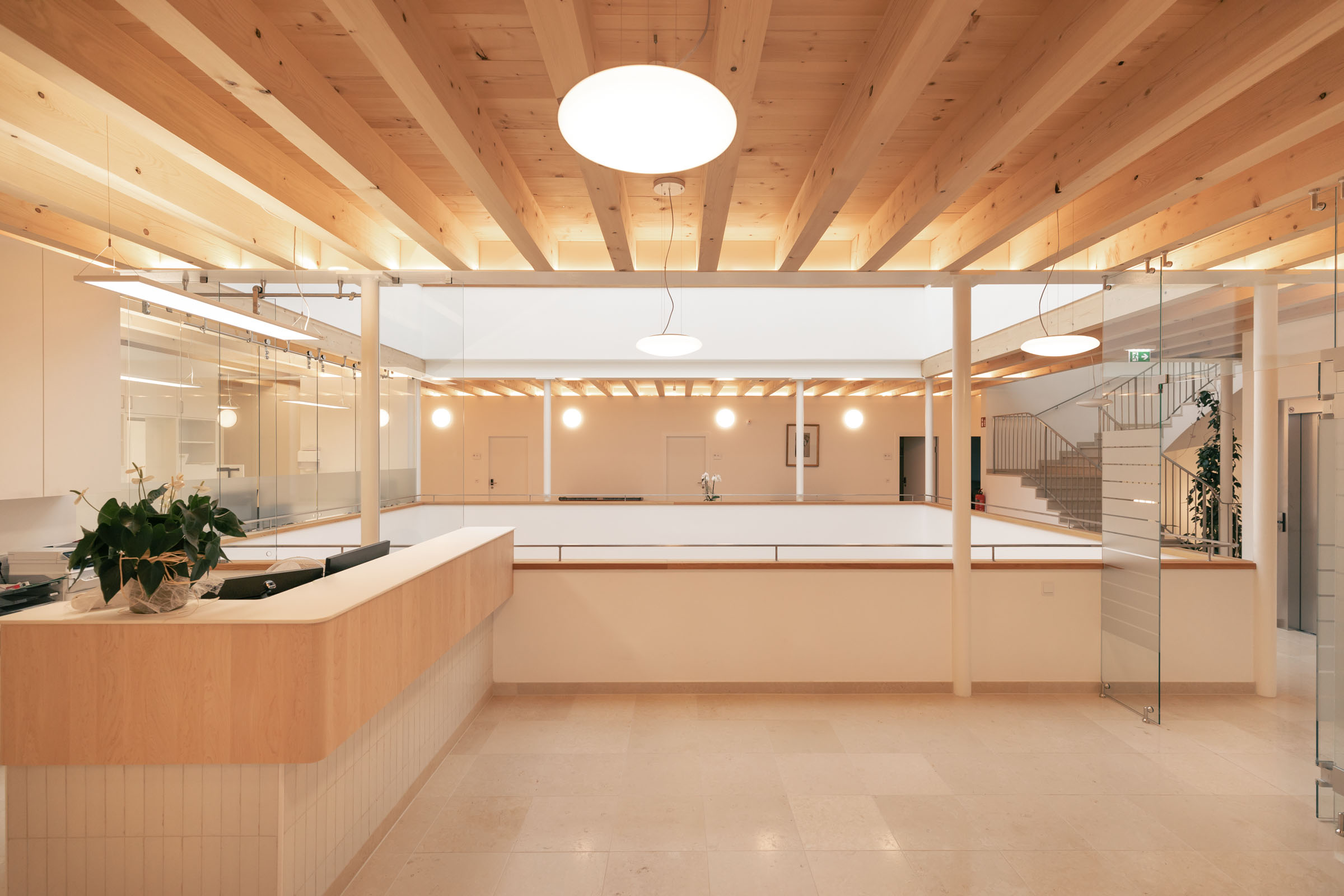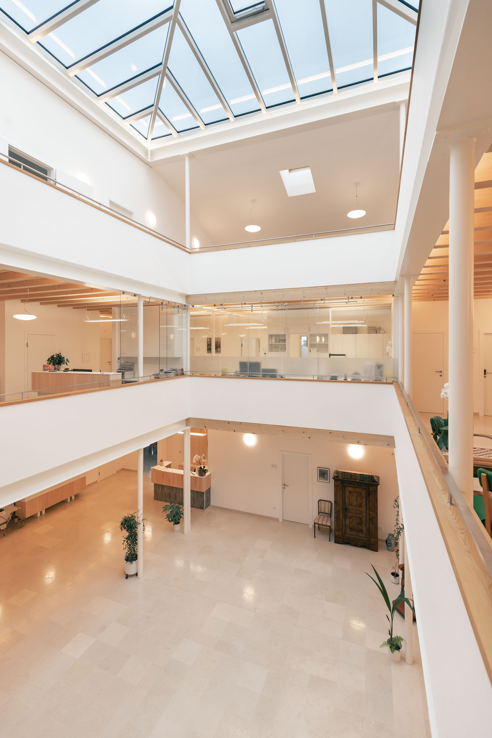 South view @ Stefan Gruber South view @ Stefan Gruber Aerial view of the symmetrical building with outdoor facilities @ Stefan Gruber Aerial view of the symmetrical building with outdoor facilities @ Stefan Gruber Central atrium @ Stefan Gruber Central atrium @ Stefan Gruber Entrance hall, viewing the central atrium @ Stefan Gruber Entrance hall, viewing the central atrium @ Stefan Gruber Shop front facing the entrance hall @ Stefan Gruber Shop front facing the entrance hall @ Stefan Gruber View from the open staircase facing upper storeys @ Stefan Gruber View from the open staircase facing upper storeys @ Stefan Gruber Reception desk of the surgery, view facing the hotel area @ Stefan Gruber Reception desk of the surgery, view facing the hotel area @ Stefan Gruber Bathroom attached to therapy room @ Stefan Gruber Bathroom attached to therapy room @ Stefan Gruber Hotel room, view facing the bathroom @ Stefan Gruber Hotel room, view facing the bathroom @ Stefan Gruber Hotel room, view facing northwest @ Stefan Gruber Hotel room, view facing northwest @ Stefan Gruber West facade, view facing eastward @ Stefan Gruber West facade, view facing eastward @ Stefan Gruber Eastern facade with pergola @ Stefan Gruber Eastern facade with pergola @ Stefan Gruber