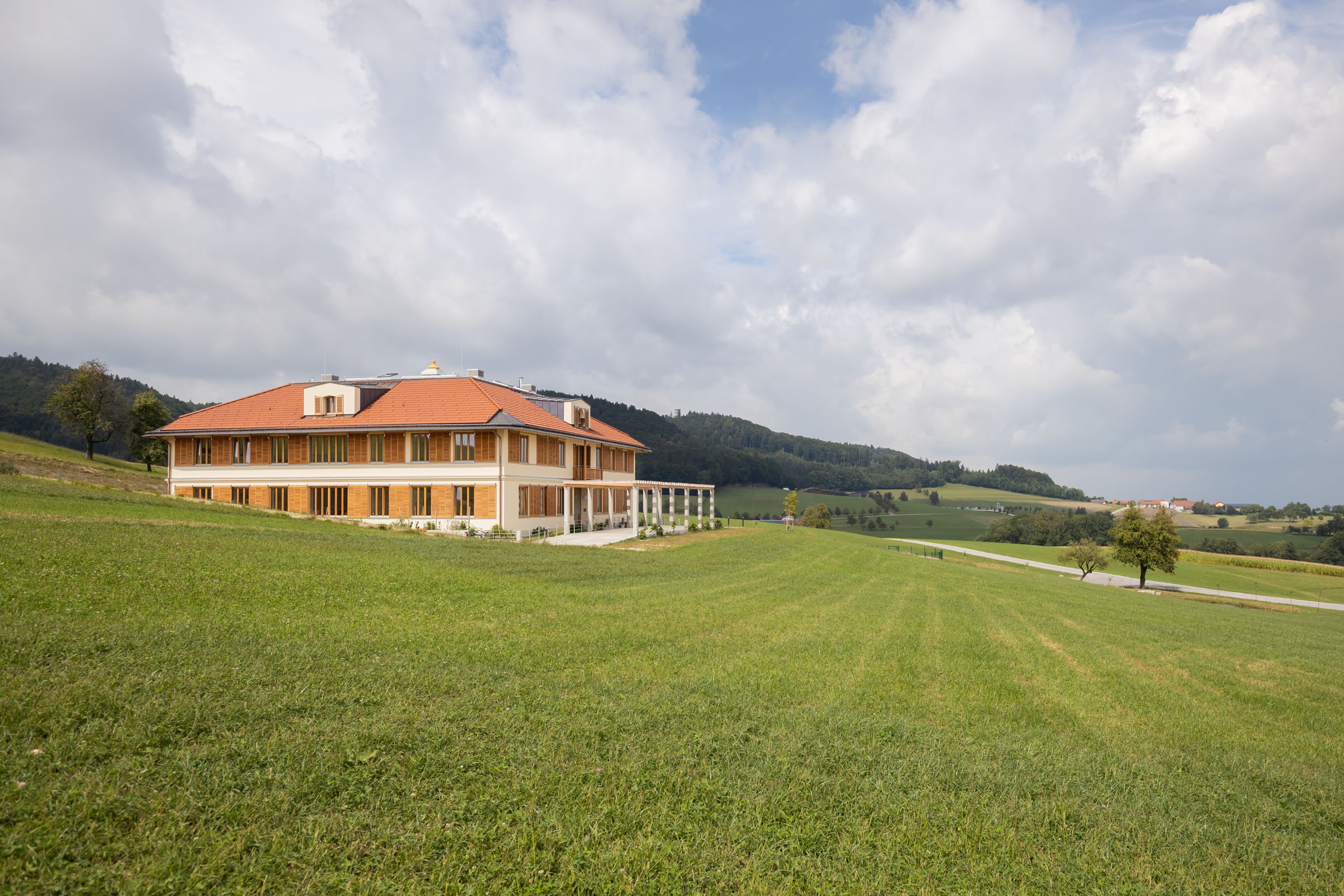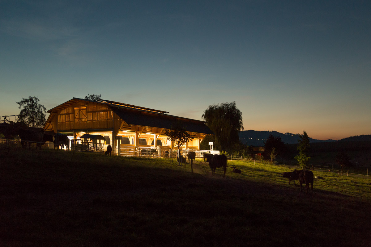 The new Wagyu-cattle house is part of an agricultural holding owned by the family of Diana and Hubert Huemer. It is situated on one of the gentle hills of the Hausruck with a view of the mountain Traunstein. The Wagyu-cattle breed which originates in Japan is reared by its owners with special attention and in harmony with nature. The cattle house offers shelter for the animals in all weathers.