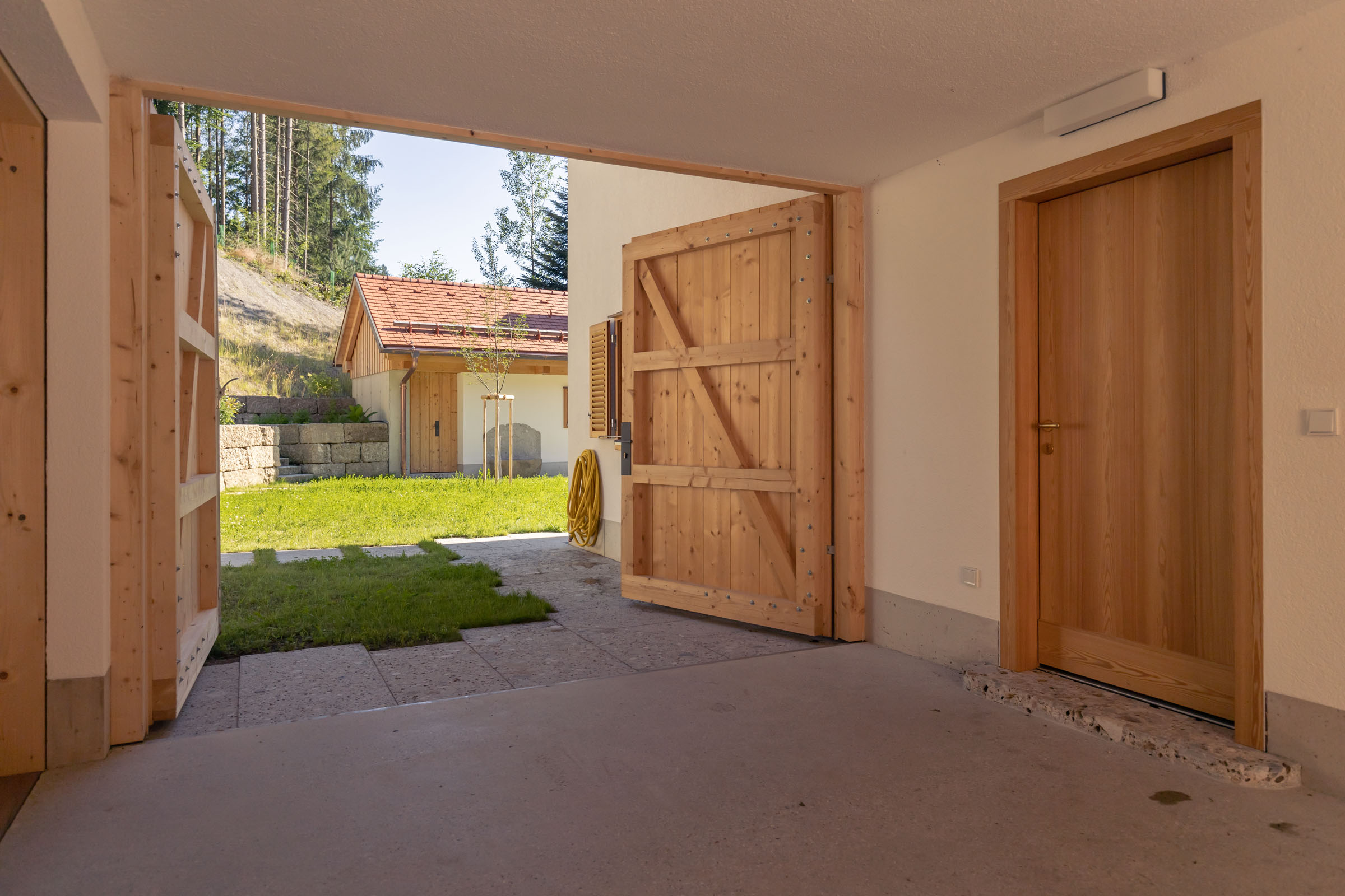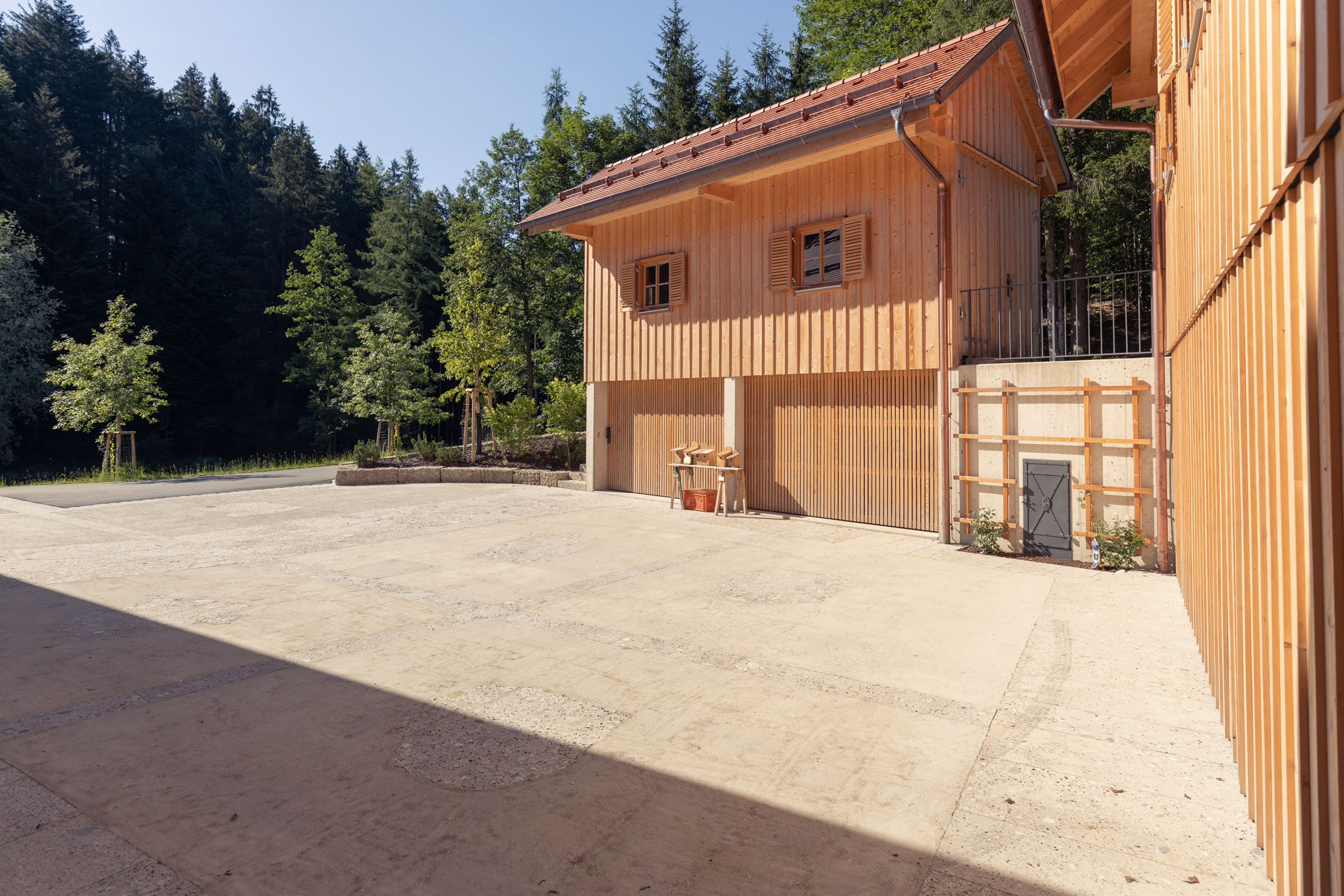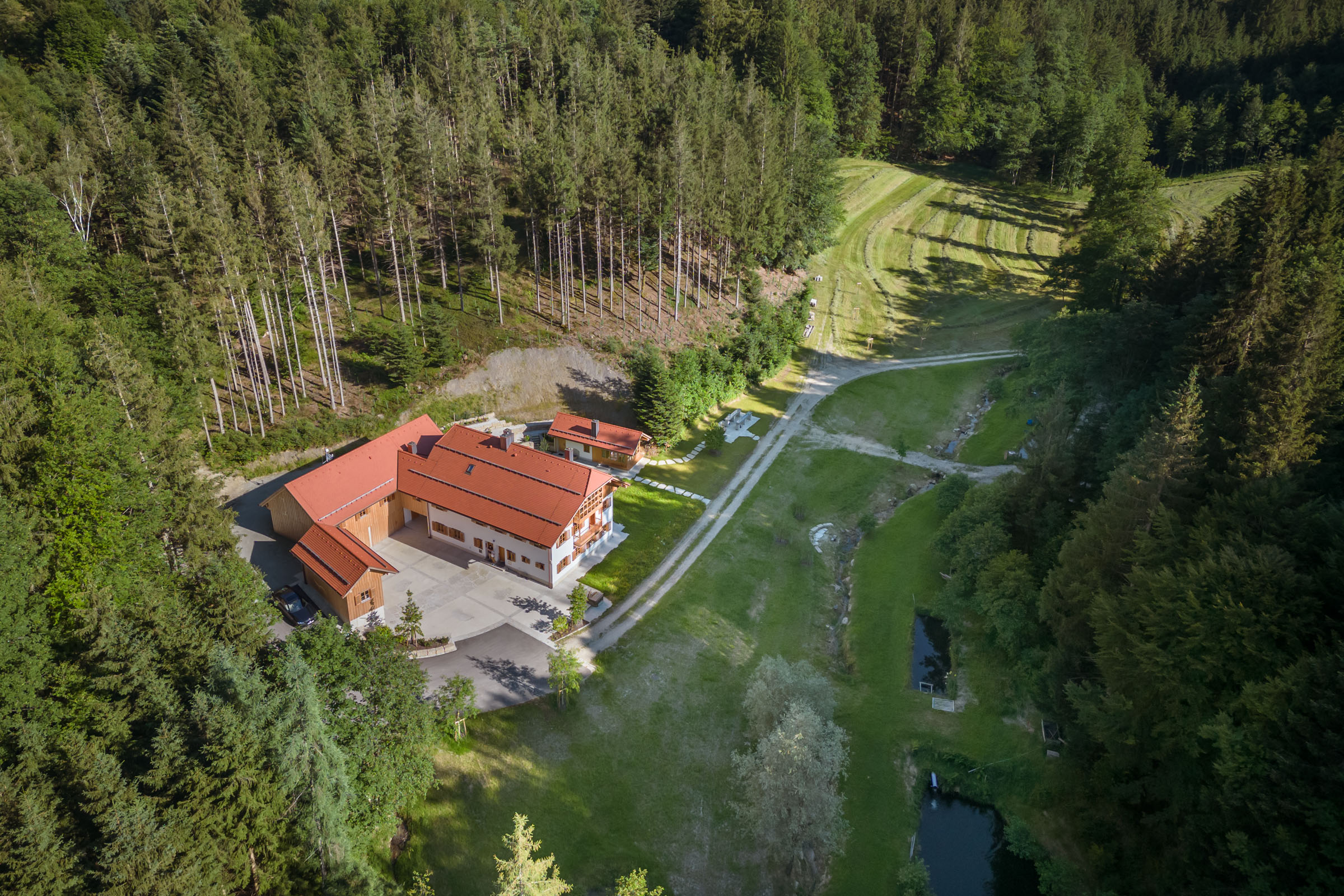 Aerial view @ Stefan Gruber Aerial view @ Stefan Gruber West facades @ Stefan Gruber West facades @ Stefan Gruber Northern farmyard @ Stefan Gruber Northern farmyard @ Stefan Gruber Thoroughfare, view facing southern farmyard @ Stefan Gruber Thoroughfare, view facing southern farmyard @ Stefan Gruber Stepped wall made of conglomerate quarrystone from Brannenburg @ Stefan Gruber Stepped wall made of conglomerate quarrystone from Brannenburg @ Stefan Gruber Forecourt of workshop and garage, view facing gazebo @ Stefan Gruber Forecourt of workshop and garage, view facing gazebo @ Stefan Gruber Main building, farm building and gazebo @ Stefan Gruber Main building, farm building and gazebo @ Stefan Gruber Night shot of the farmstead @ Stefan Gruber Night shot of the farmstead @ Stefan Gruber